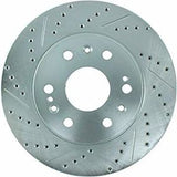 Premium e-coated rotor with advanced metallurgy that greatly reduces pad squeal. Especially effective with higher friction, European style brake pad compounds. Drilled for increased bite, improved looks and better performance