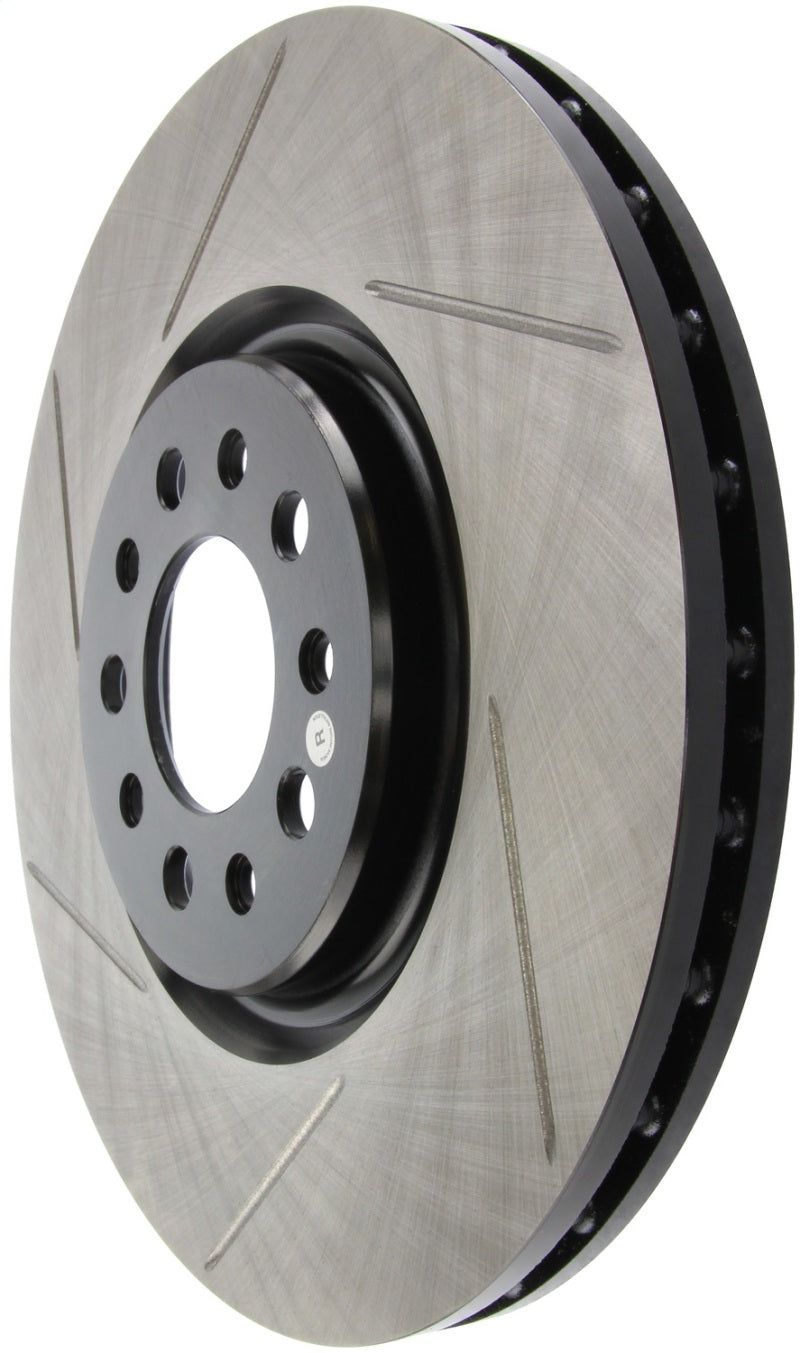 StopTech Slotted Sport Rotors are 1-piece direct replacement brake discs for factory brake systems and stock calipers that look great behind your wheels – and offer significantly improved braking performance. The unique slotting aids with heat and brake dust dispersal; prevents glazing of the pads; adds bite and improves wet and dry braking performance. Built to last; the black e-coating provides protection from corrosion and the high carbon metallurgy (in most applications) offers quieter operation; better crack resistance and increased performance.
