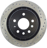 StopTech Drilled Sport Rotors are 1-piece direct replacement brake discs for factory brake systems and stock calipers that look great behind your wheels – and offer significantly improved braking performance. The unique cross-drilling aids with heat and brake dust dispersal; prevents glazing of the pads; adds bite and improves wet and dry braking performance. Built to last; the black e-coating provides protection from corrosion and the high carbon metallurgy (in most applications) offers quieter operation; better crack resistance and increased performance.