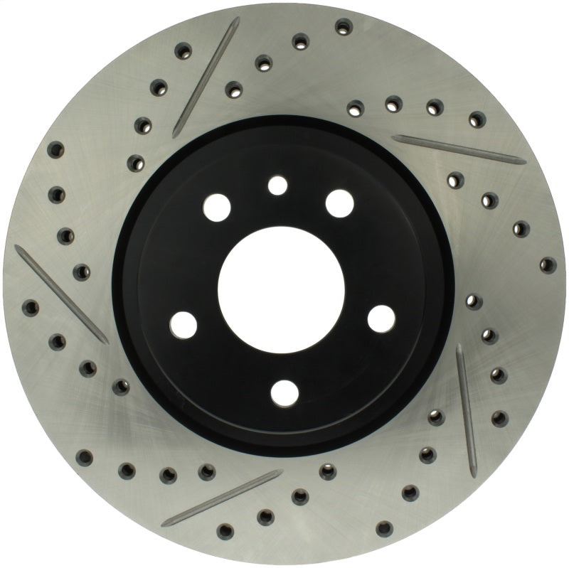 StopTech Drilled and Slotted Sport Rotors are 1-piece direct replacement brake discs for factory brake systems and stock calipers that look great behind your wheels – and offer significantly improved braking performance. The unique cross-drilling and slotting aids with heat and brake dust dispersal, prevents glazing of the pads, adds bite and improves wet and dry braking performance. Built to last, the black e-coating provides protection from corrosion and the high carbon metallurgy (in most applications) offers quieter operation, better crack resistance and increased performance.