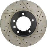 StopTech Drilled and Slotted Sport Rotors are 1-piece direct replacement brake discs for factory brake systems and stock calipers that look great behind your wheels – and offer significantly improved braking performance. The unique cross-drilling and slotting aids with heat and brake dust dispersal, prevents glazing of the pads, adds bite and improves wet and dry braking performance. Built to last, the black e-coating provides protection from corrosion and the high carbon metallurgy (in most applications) offers quieter operation, better crack resistance and increased performance.