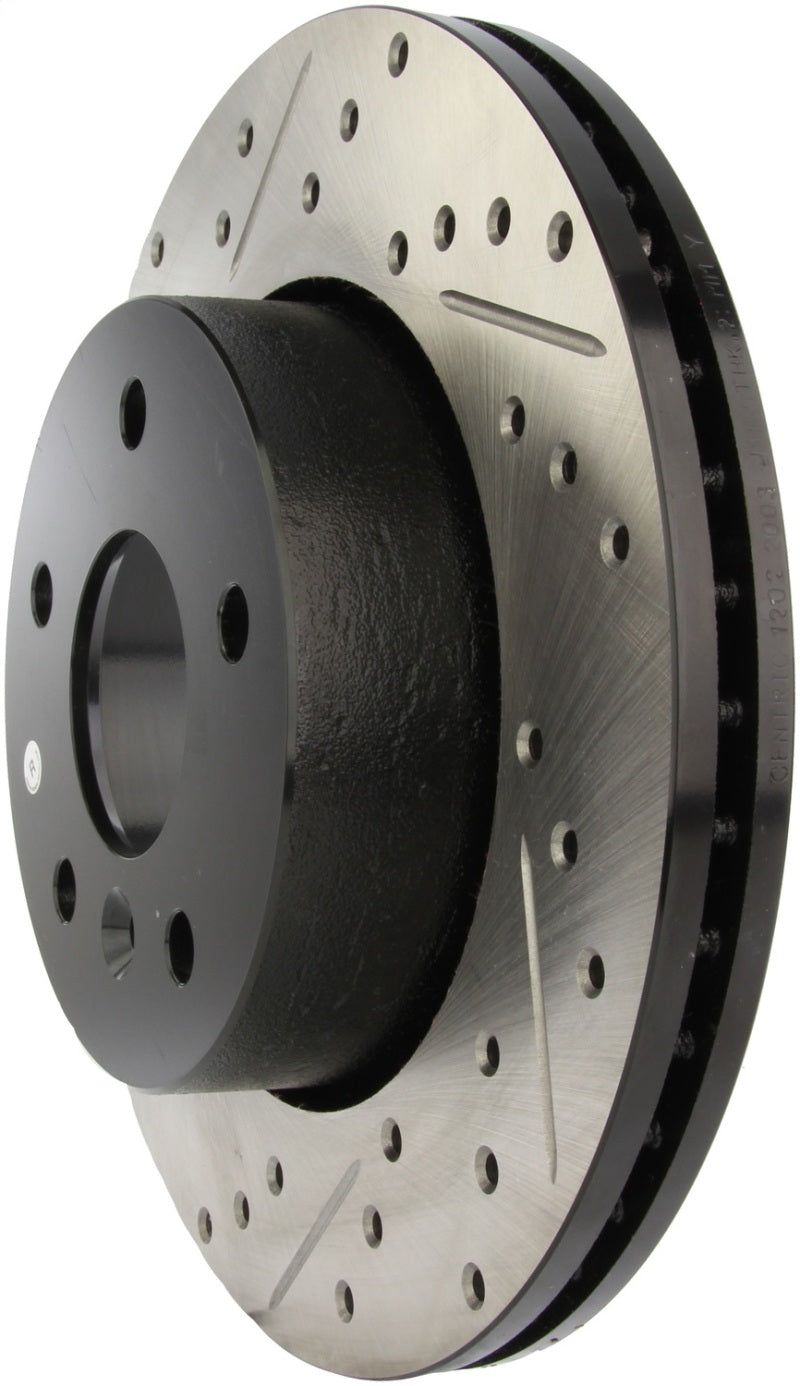 StopTech Drilled and Slotted Sport Rotors are 1-piece direct replacement brake discs for factory brake systems and stock calipers that look great behind your wheels – and offer significantly improved braking performance. The unique cross-drilling and slotting aids with heat and brake dust dispersal, prevents glazing of the pads, adds bite and improves wet and dry braking performance. Built to last, the black e-coating provides protection from corrosion and the high carbon metallurgy (in most applications) offers quieter operation, better crack resistance and increased performance.