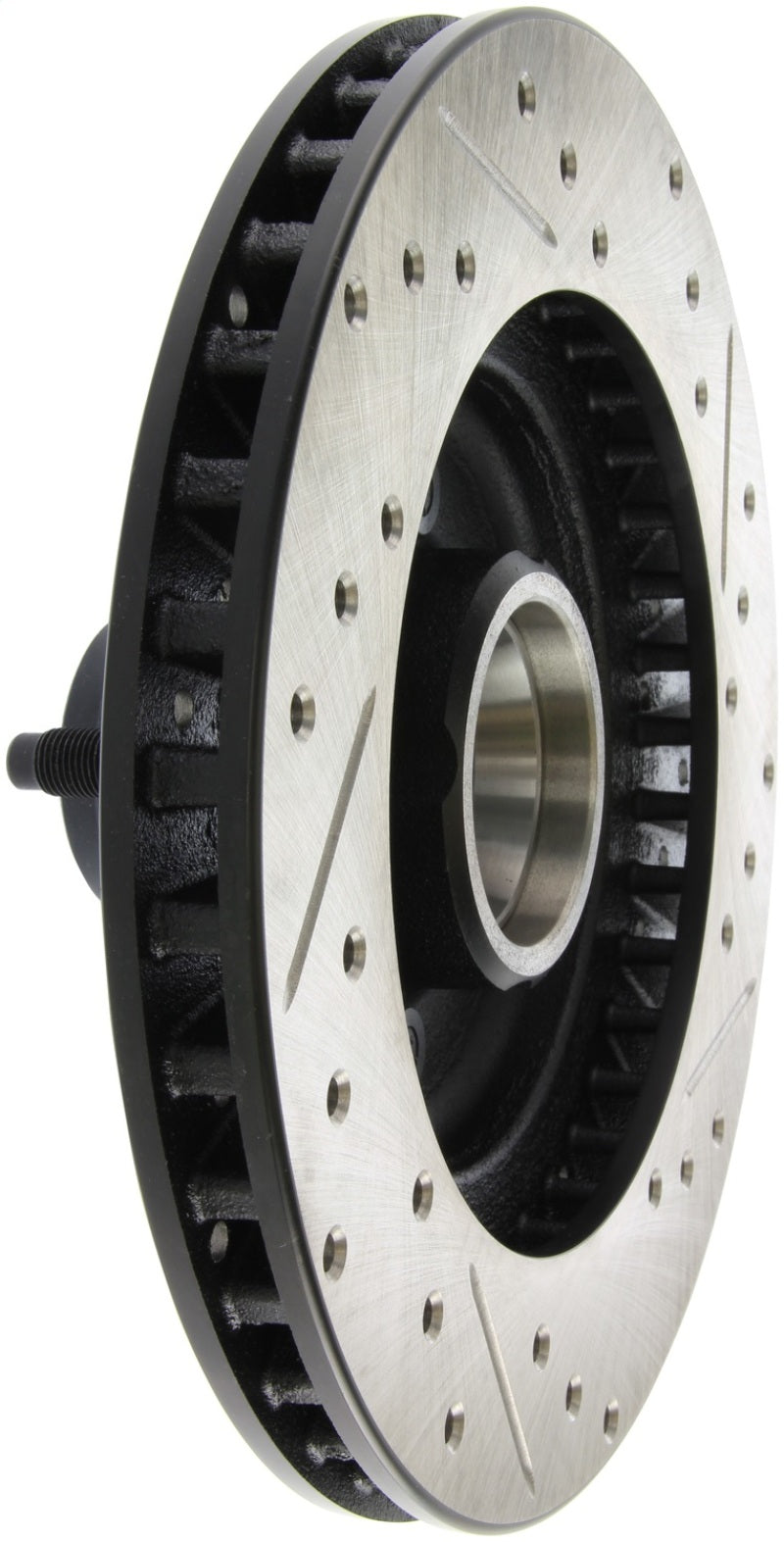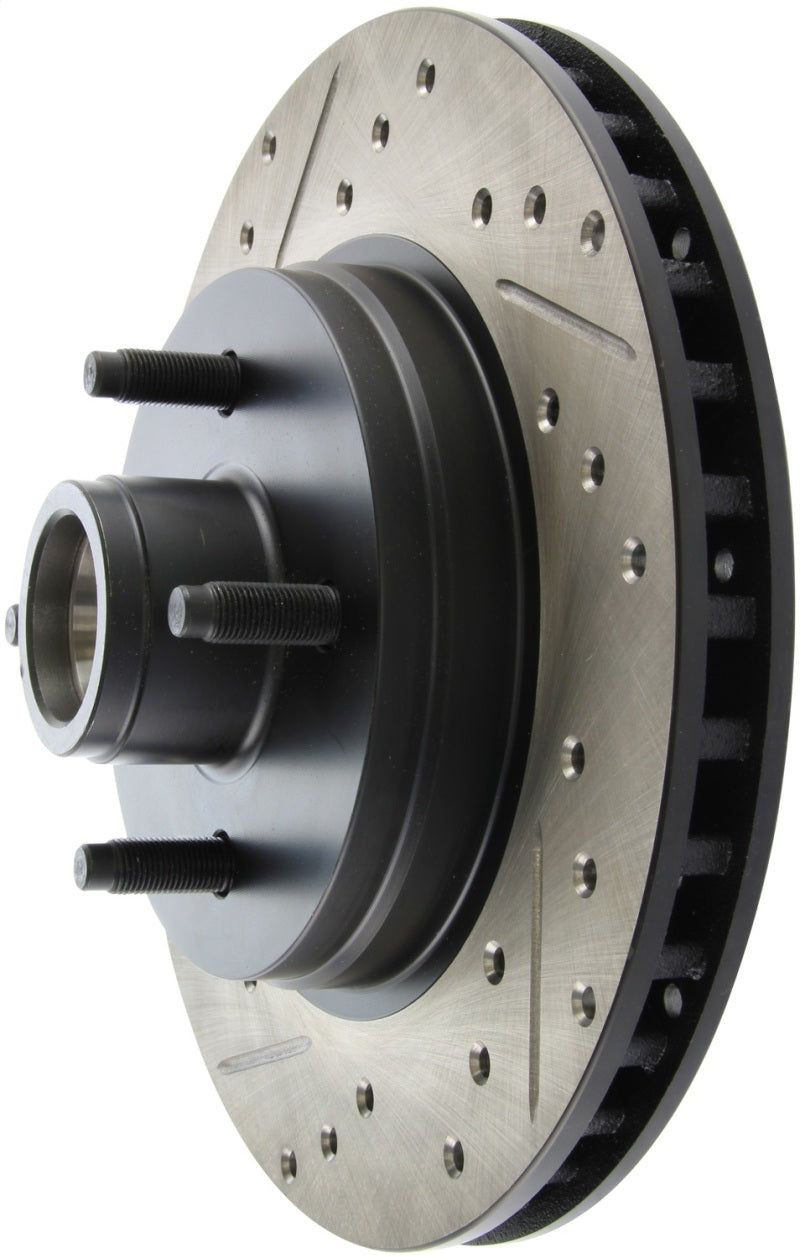 StopTech Drilled and Slotted Sport Rotors are 1-piece direct replacement brake discs for factory brake systems and stock calipers that look great behind your wheels – and offer significantly improved braking performance. The unique cross-drilling and slotting aids with heat and brake dust dispersal, prevents glazing of the pads, adds bite and improves wet and dry braking performance. Built to last, the black e-coating provides protection from corrosion and the high carbon metallurgy (in most applications) offers quieter operation, better crack resistance and increased performance.