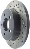 StopTech Drilled and Slotted Sport Rotors are 1-piece direct replacement brake discs for factory brake systems and stock calipers that look great behind your wheels – and offer significantly improved braking performance. The unique cross-drilling and slotting aids with heat and brake dust dispersal, prevents glazing of the pads, adds bite and improves wet and dry braking performance. Built to last, the black e-coating provides protection from corrosion and the high carbon metallurgy (in most applications) offers quieter operation, better crack resistance and increased performance.
