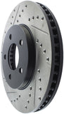 StopTech Drilled and Slotted Sport Rotors are 1-piece direct replacement brake discs for factory brake systems and stock calipers that look great behind your wheels – and offer significantly improved braking performance. The unique cross-drilling and slotting aids with heat and brake dust dispersal, prevents glazing of the pads, adds bite and improves wet and dry braking performance. Built to last, the black e-coating provides protection from corrosion and the high carbon metallurgy (in most applications) offers quieter operation, better crack resistance and increased performance.