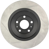 StopTech Slotted Sport Rotors are 1-piece direct replacement brake discs for factory brake systems and stock calipers that look great behind your wheels – and offer significantly improved braking performance. The unique slotting aids with heat and brake dust dispersal; prevents glazing of the pads; adds bite and improves wet and dry braking performance. Built to last; the black e-coating provides protection from corrosion and the high carbon metallurgy (in most applications) offers quieter operation; better crack resistance and increased performance.