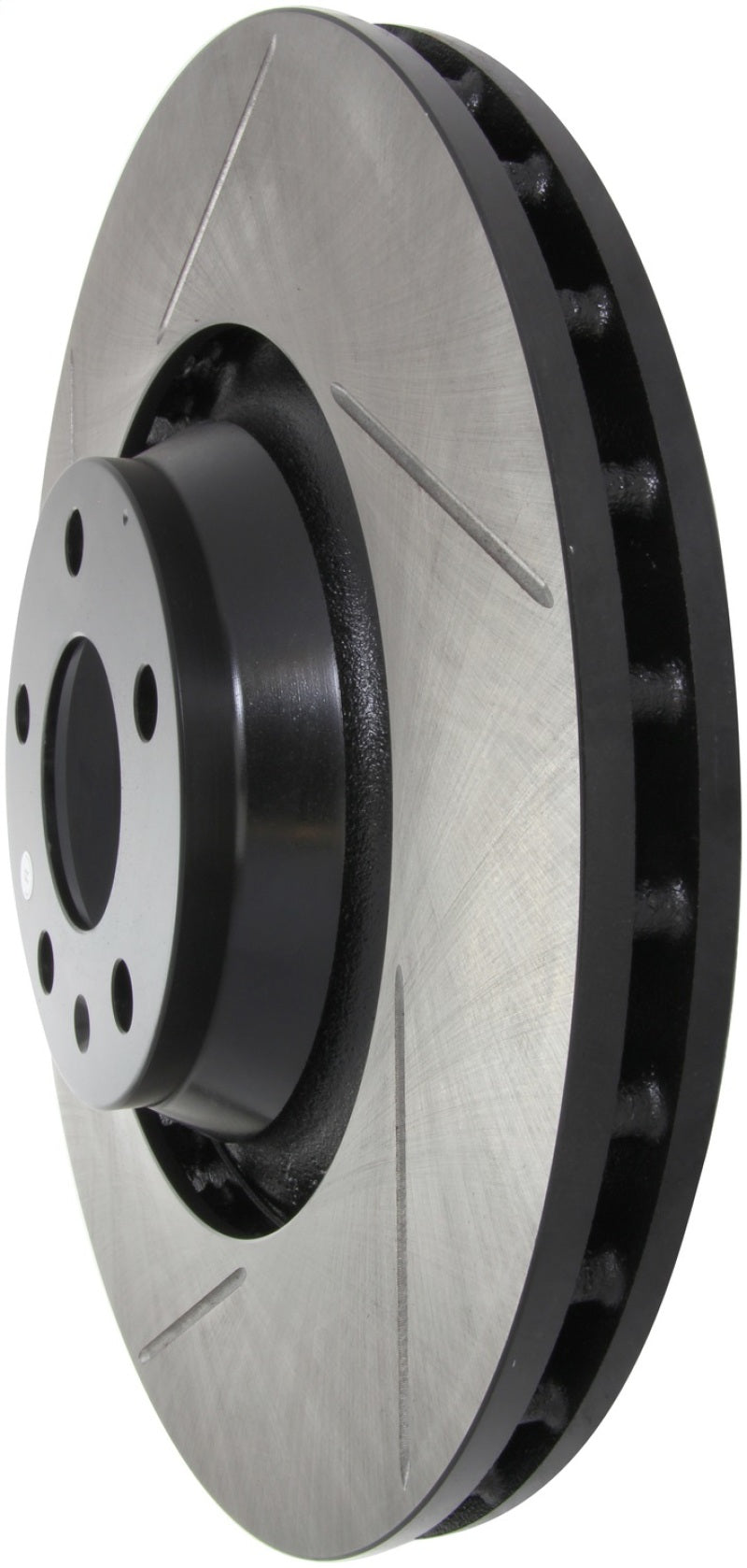 StopTech Slotted Sport Rotors are 1-piece direct replacement brake discs for factory brake systems and stock calipers that look great behind your wheels – and offer significantly improved braking performance. The unique slotting aids with heat and brake dust dispersal; prevents glazing of the pads; adds bite and improves wet and dry braking performance. Built to last; the black e-coating provides protection from corrosion and the high carbon metallurgy (in most applications) offers quieter operation; better crack resistance and increased performance.