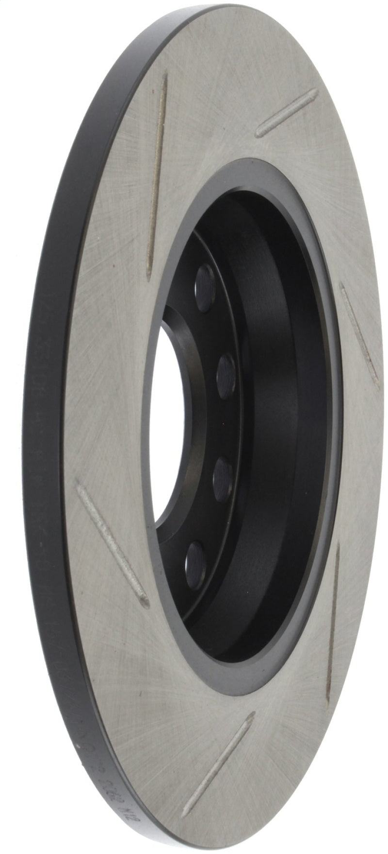StopTech Slotted Sport Rotors are 1-piece direct replacement brake discs for factory brake systems and stock calipers that look great behind your wheels – and offer significantly improved braking performance. The unique slotting aids with heat and brake dust dispersal; prevents glazing of the pads; adds bite and improves wet and dry braking performance. Built to last; the black e-coating provides protection from corrosion and the high carbon metallurgy (in most applications) offers quieter operation; better crack resistance and increased performance.