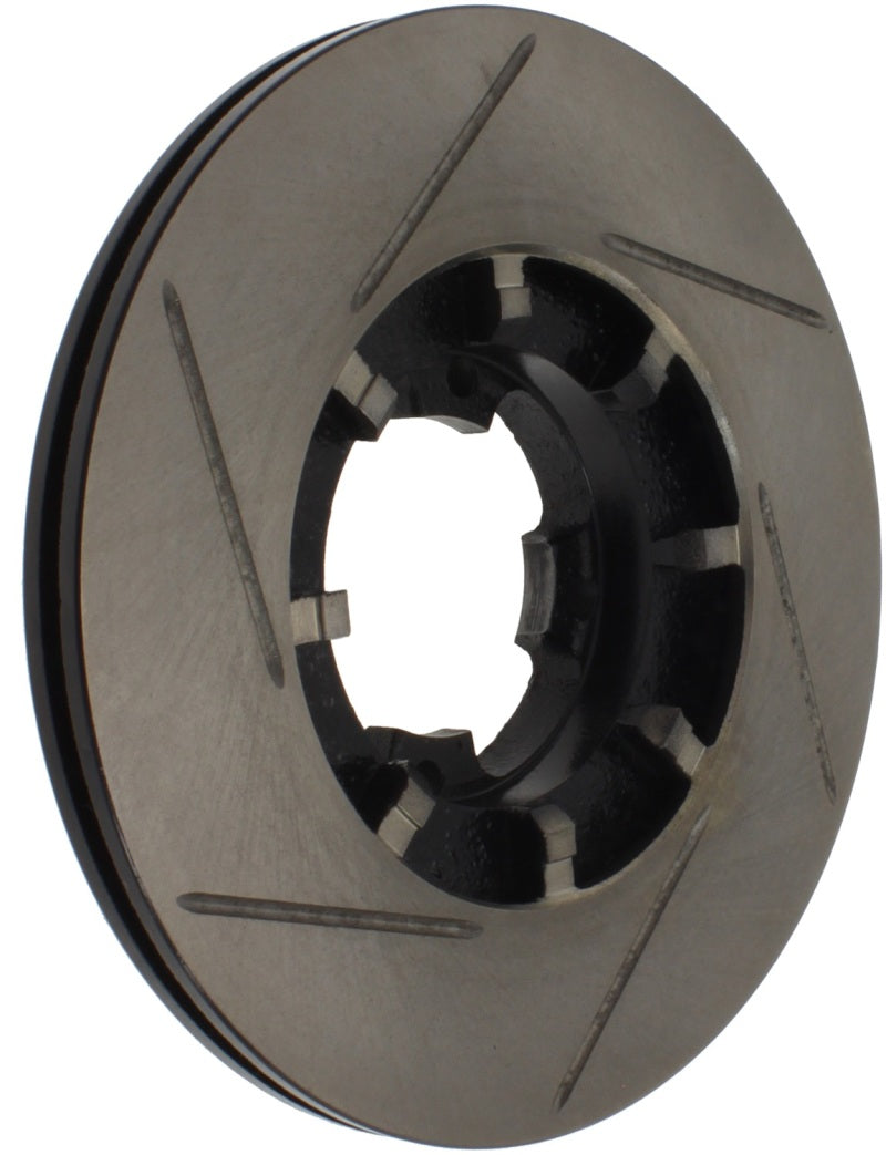 StopTech Slotted Sport Rotors are 1-piece direct replacement brake discs for factory brake systems and stock calipers that look great behind your wheels – and offer significantly improved braking performance. The unique slotting aids with heat and brake dust dispersal; prevents glazing of the pads; adds bite and improves wet and dry braking performance. Built to last; the black e-coating provides protection from corrosion and the high carbon metallurgy (in most applications) offers quieter operation; better crack resistance and increased performance.