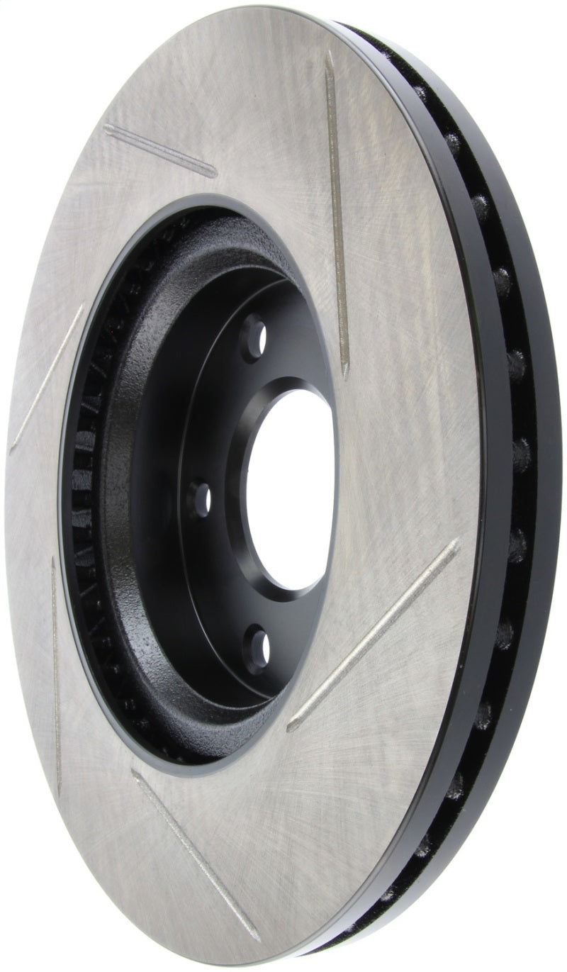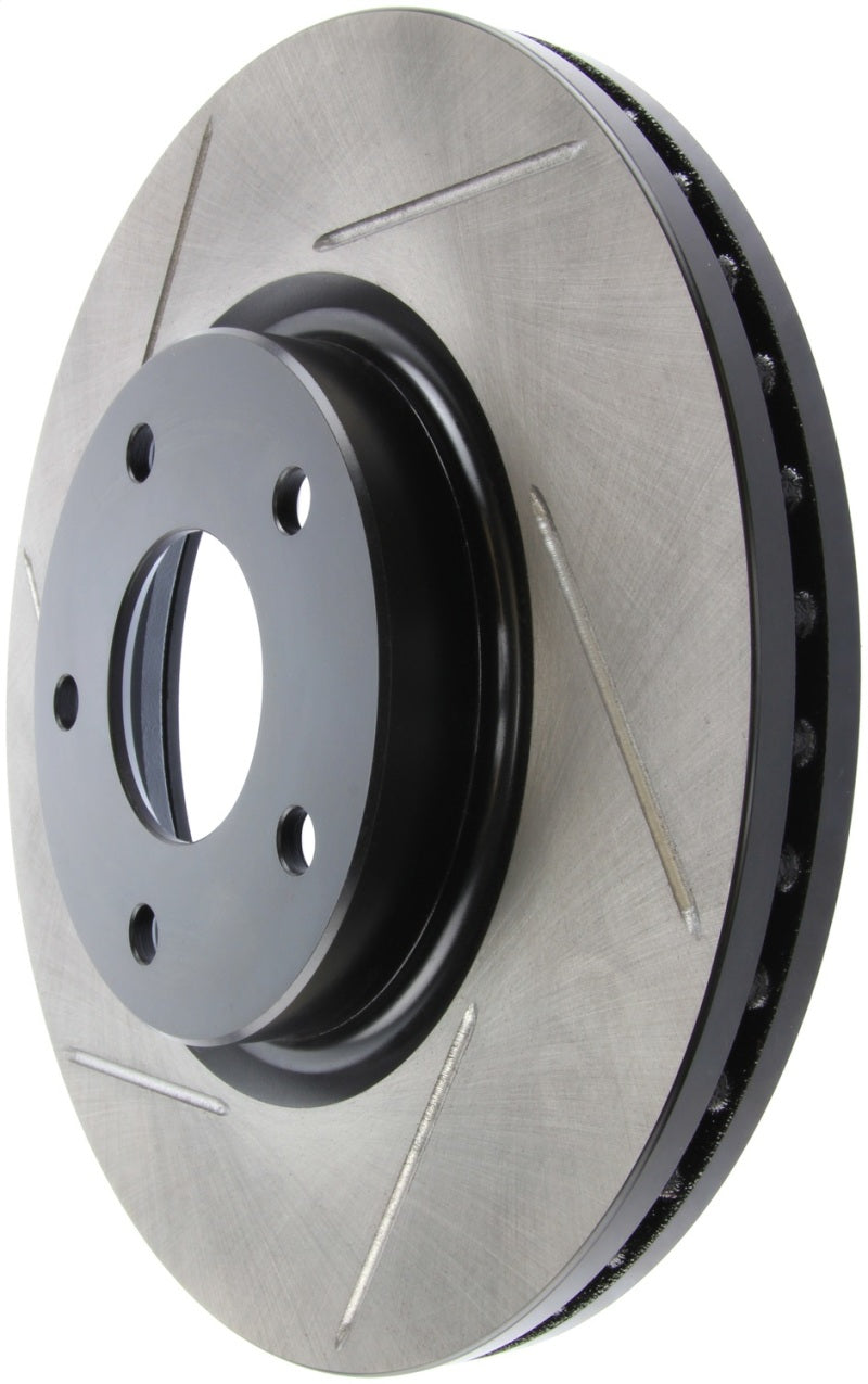 StopTech Slotted Sport Rotors are 1-piece direct replacement brake discs for factory brake systems and stock calipers that look great behind your wheels – and offer significantly improved braking performance. The unique slotting aids with heat and brake dust dispersal; prevents glazing of the pads; adds bite and improves wet and dry braking performance. Built to last; the black e-coating provides protection from corrosion and the high carbon metallurgy (in most applications) offers quieter operation; better crack resistance and increased performance.